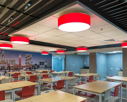 Armstong’s metal ceilings are light, durable and come in a variety of flexible shapes and forms. Available in a palette of bright colours, they give architects and designers unlimited creative options and uninhibited flexibility in thoughtful implementation.
