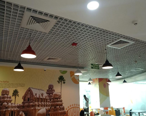 Some of our project examples include cases where a metal grid system with G.I lay in regular in clean area spine was implemented over a 60,000 square feet area in a leading multi-national corporation. Such examples reflect the ability to incorporate tasteful aesthetics into the ceiling space, without any compromise on the form or function.